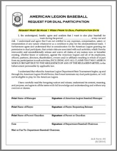 Players born in 2007 or 2008, must play in the Senior Legion Baseball program.